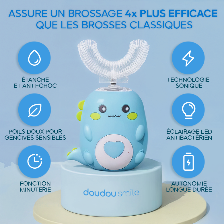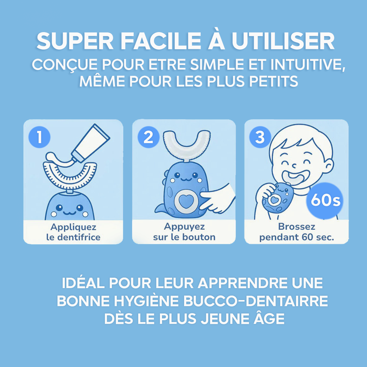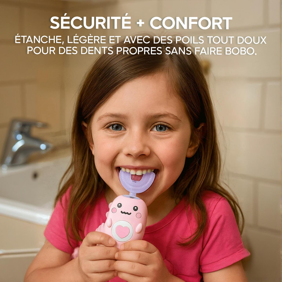 ✔️ Forme en U ludique et ergonomiqueFini les disputes ! Sa forme enveloppante nettoie toutes les dents en même temps — le brossage devient un jeu.